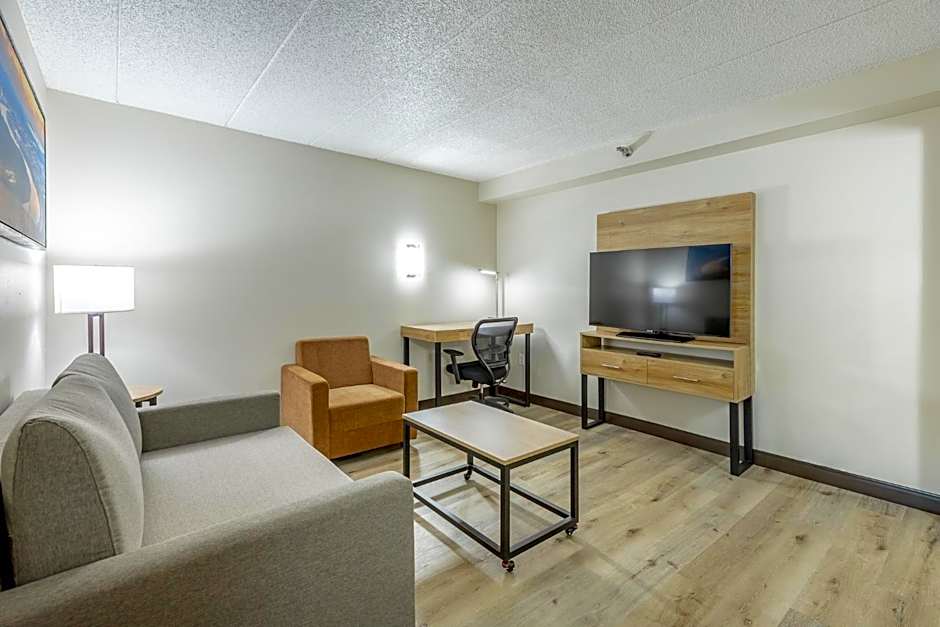 Featuring a seating area with sofa, this suite offers a flat-screen cable TV, microwave and refrigerator.